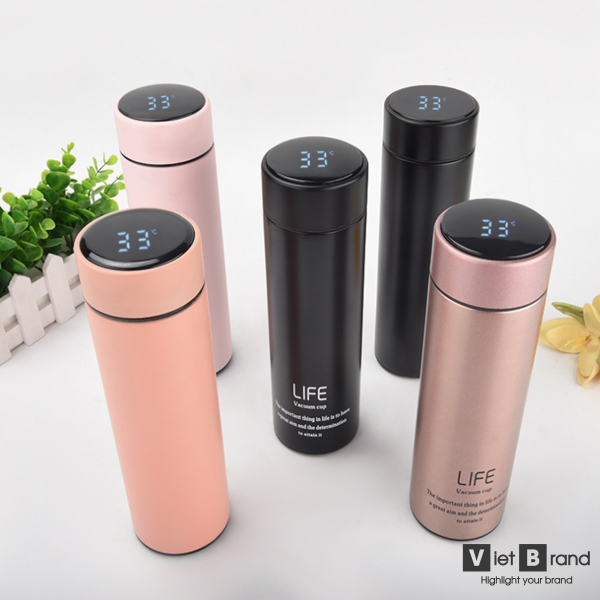 Bình giữ nhiệt in logo hiển thị nhiệt độ được thiết kế gọn nhẹ, dễ dàng mang đi trong khi di chuyển rất tiện lợi với mọi lứa tuổi. Ngoài ra sản phẩm bình giữ nhiệt hiển thị nhiệt độ còn đang được rất nhiều người tiêu dùng trên thị trường tìm kiếm sử dụng cũng như làm quà tặng. Với nắp bình có hiển thị nhiệt động trong bình bình hiện tại là bao nhiêu từ đó người dùng có thể biết được đồ ăn thức uống bên trong bình còn nóng hay không.